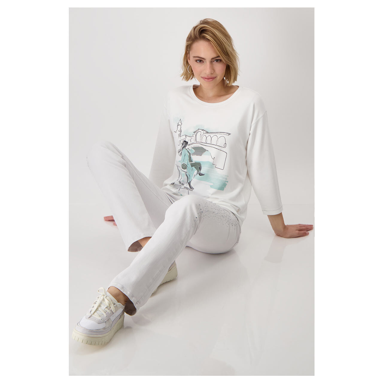 - Beschreibung Damen T-Shirt in Cremeweiß mit Print Zarte Farben erwarten Sie auf diesem Monari Damen T-Shirt! Neben dem sanften Weiß als Grundton zeigt sich der Print in einer tollen Kombination aus ge… Mehr