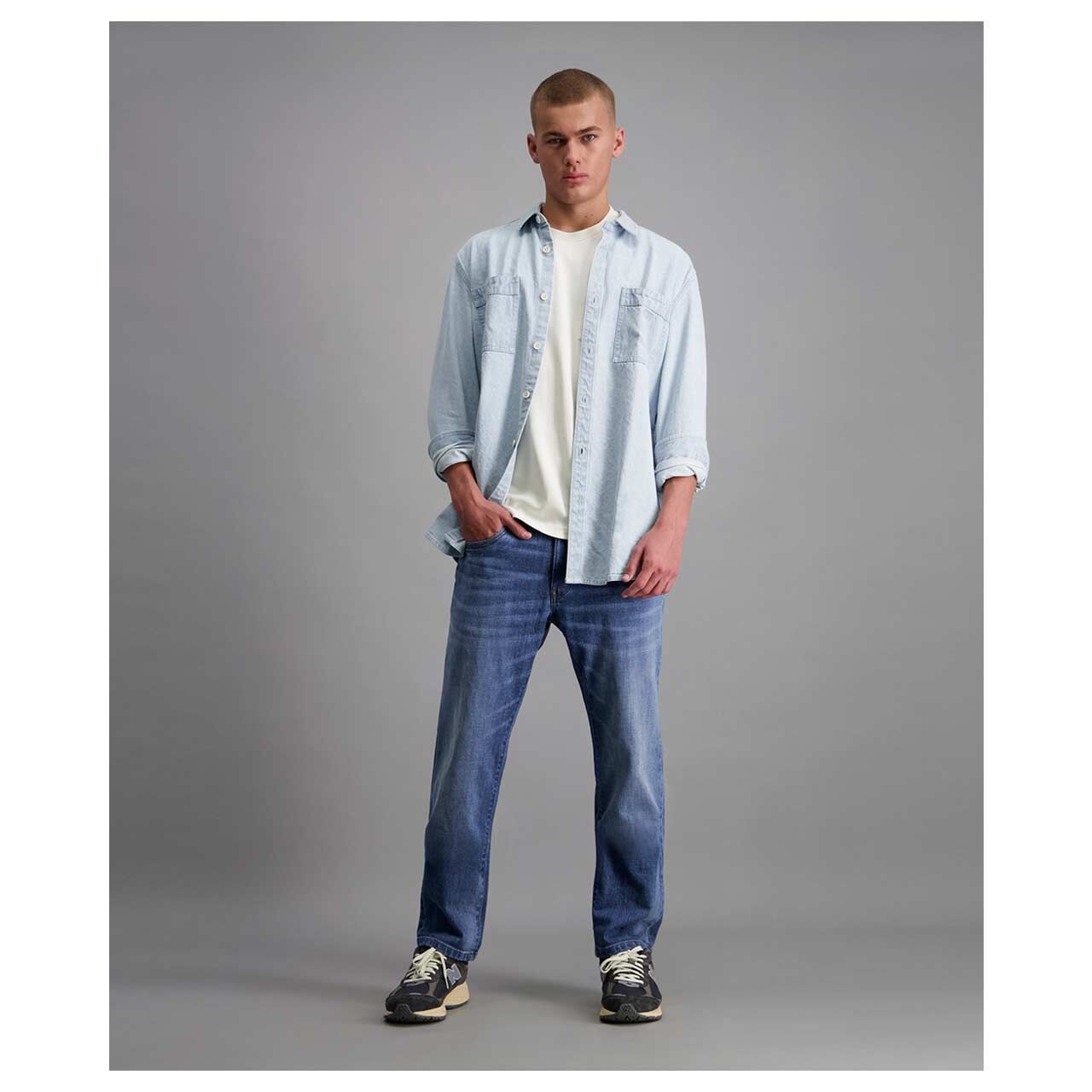 - Straight Fit: schlankes gerades Bein / regulärer Bund
