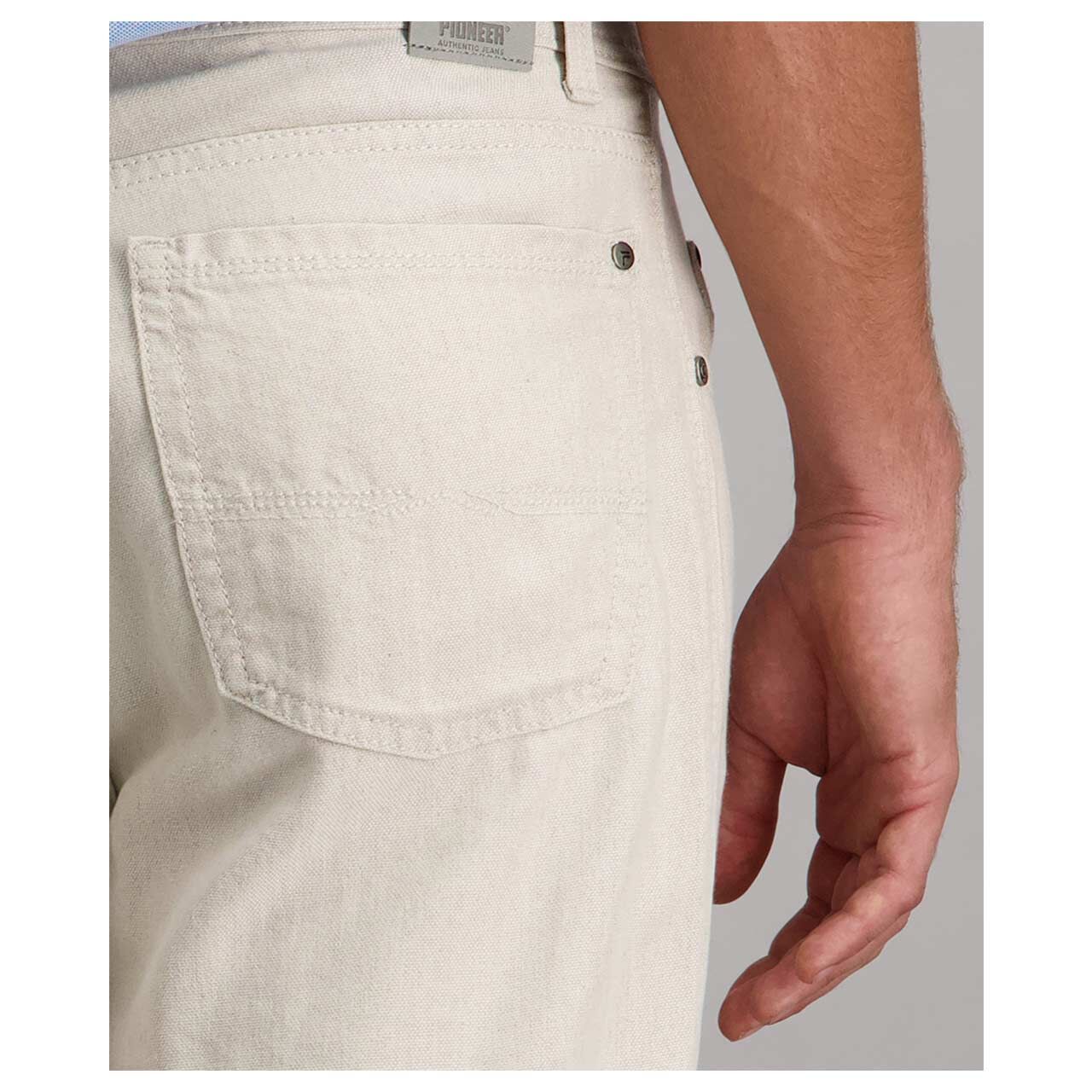 Der helle Beigeton verleiht dieser Pioneer Rando eine ruhige, natürliche Ausstrahlung und lässt sich vielseitig kombinieren. Der leichte Leinenmix sorgt für ein angenehm luftiges Tragegefühl und bringt eine dezente, lebendige Struktur in den Look.