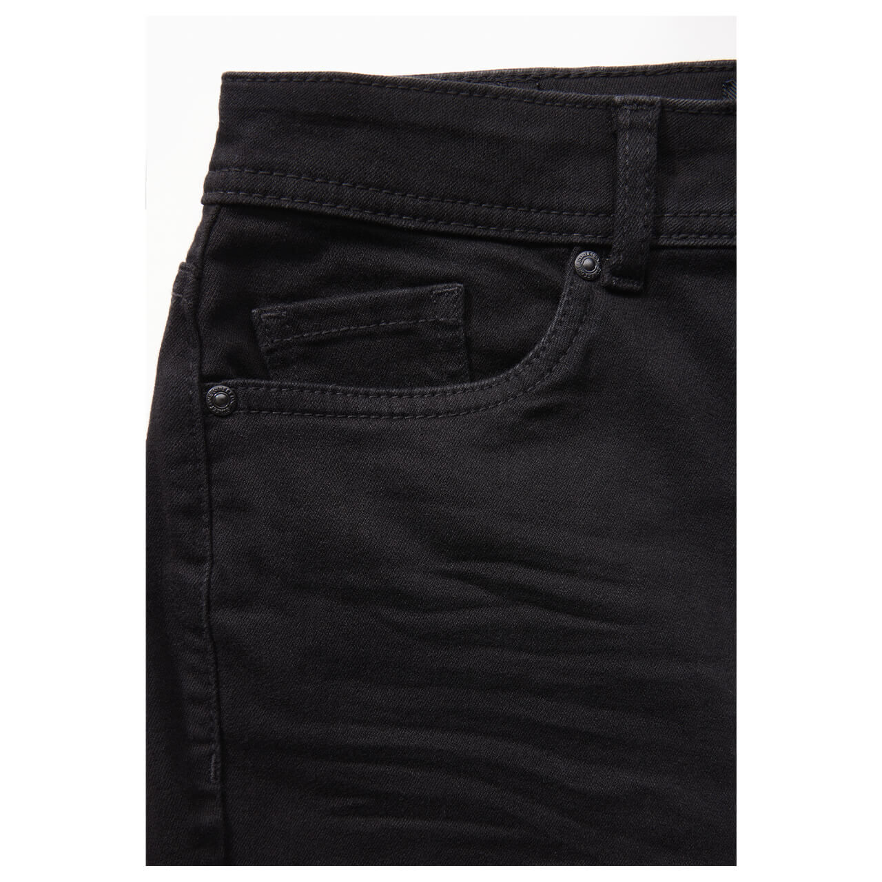 Die Street One Jeans überzeugt mit ihrem schmalen Schnitt, der zum unteren Ende weiter wird und in einem trendigen Schlag endet. Ansonsten punktet die Damenjeans als Allrounder in einem schönen Schwarz. Mit ihren schwarzen Details lässt sie sich zu allem kombinieren. Ein echter Hingucker ist der glänzende Markenpatch.