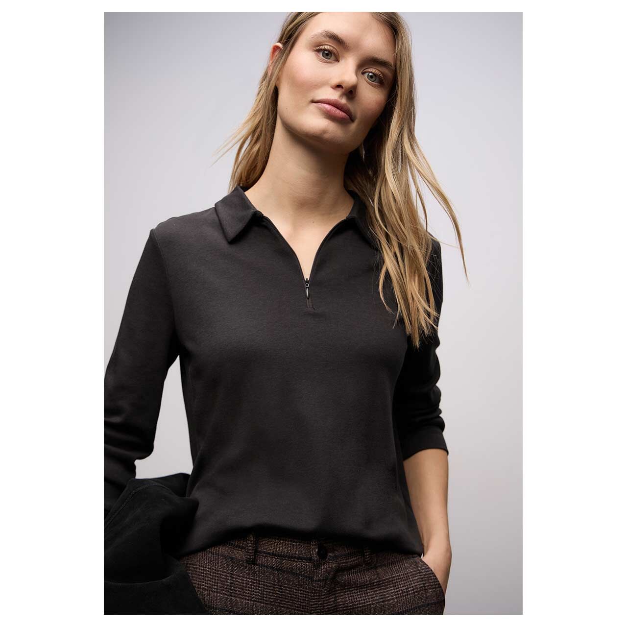 Street One Damen 3/4 Arm Poloshirt Basic Zipper darkest brown