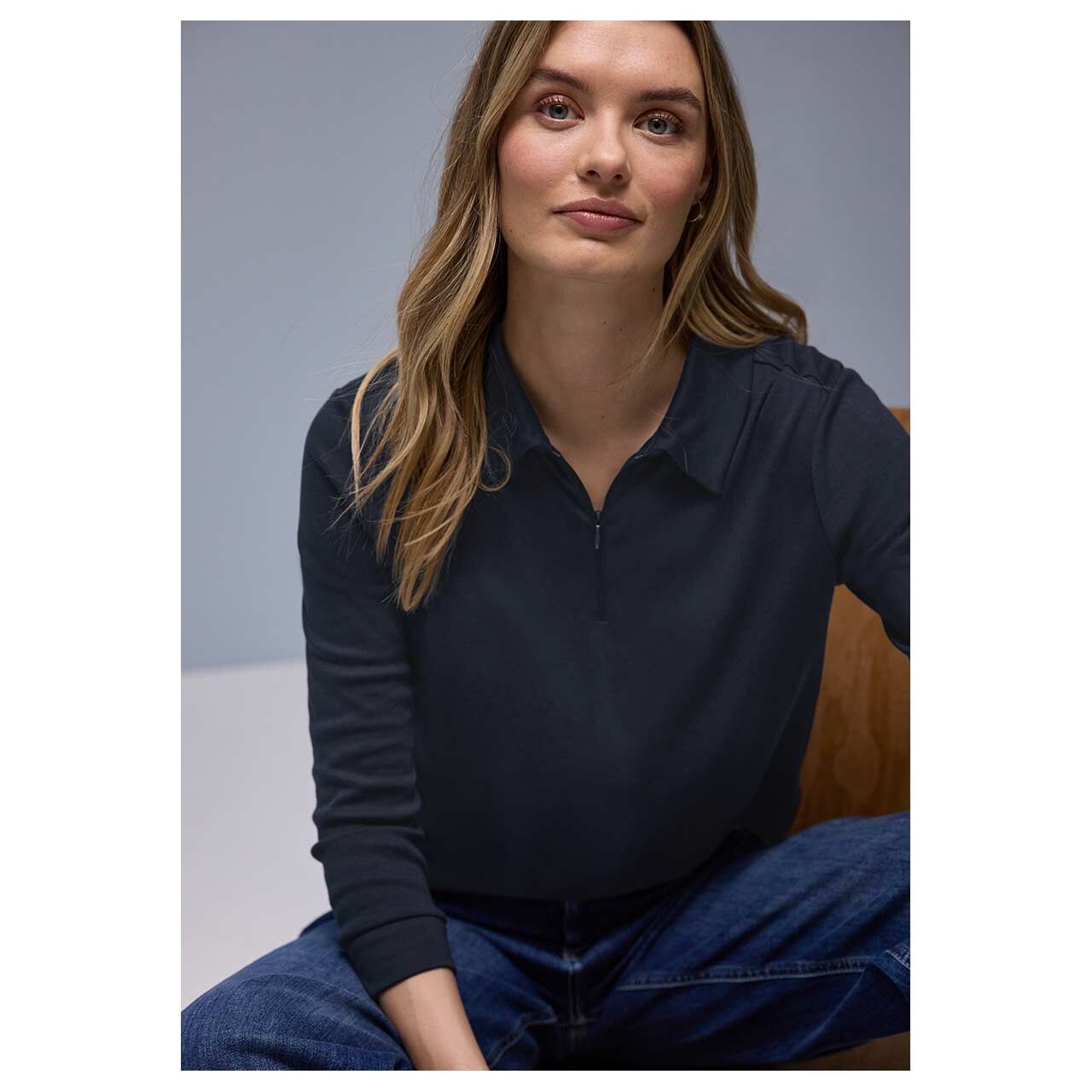 Street One Damen 3/4 Arm Poloshirt Basic Zipper shadowed navy