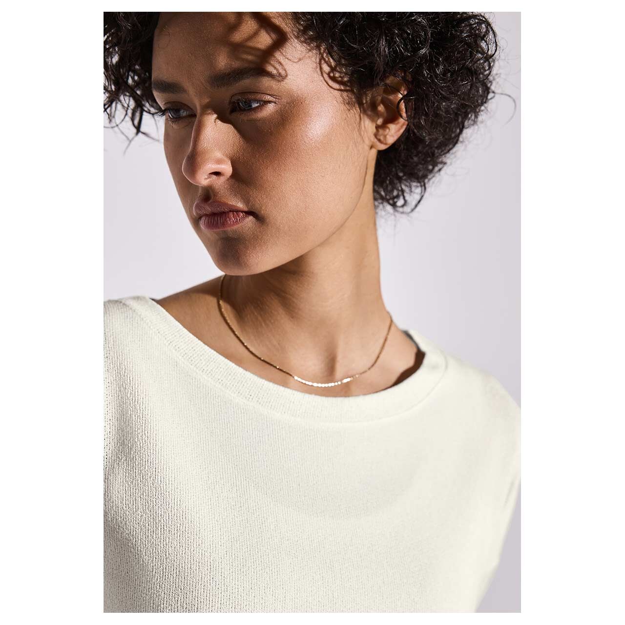 - Beschreibung Damen 3/4 Arm Shirt Knit Look in Cremeweiß Das Damen T-Shirt von Street One punktet mit seinem U-Boot-Ausschnitt und der modischen Strick-Optik. Der weiche Viskosemix sorgt für eine angene… Mehr