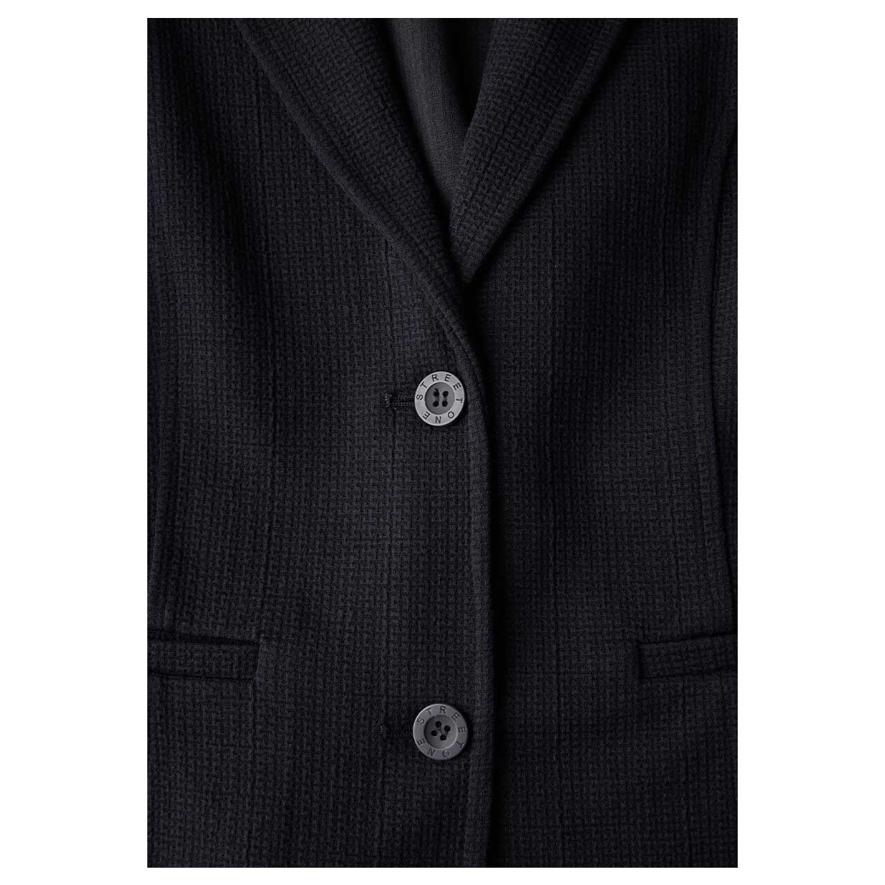 Der Damen Blazer von Street One ist ein stilvolles Must-have mit Reverskragen und angedeuteten Taschen. Der Viskosemix mit Stretchanteil sorgt für hohen Tragekomfort. Perfekt für elegante und moderne Looks!