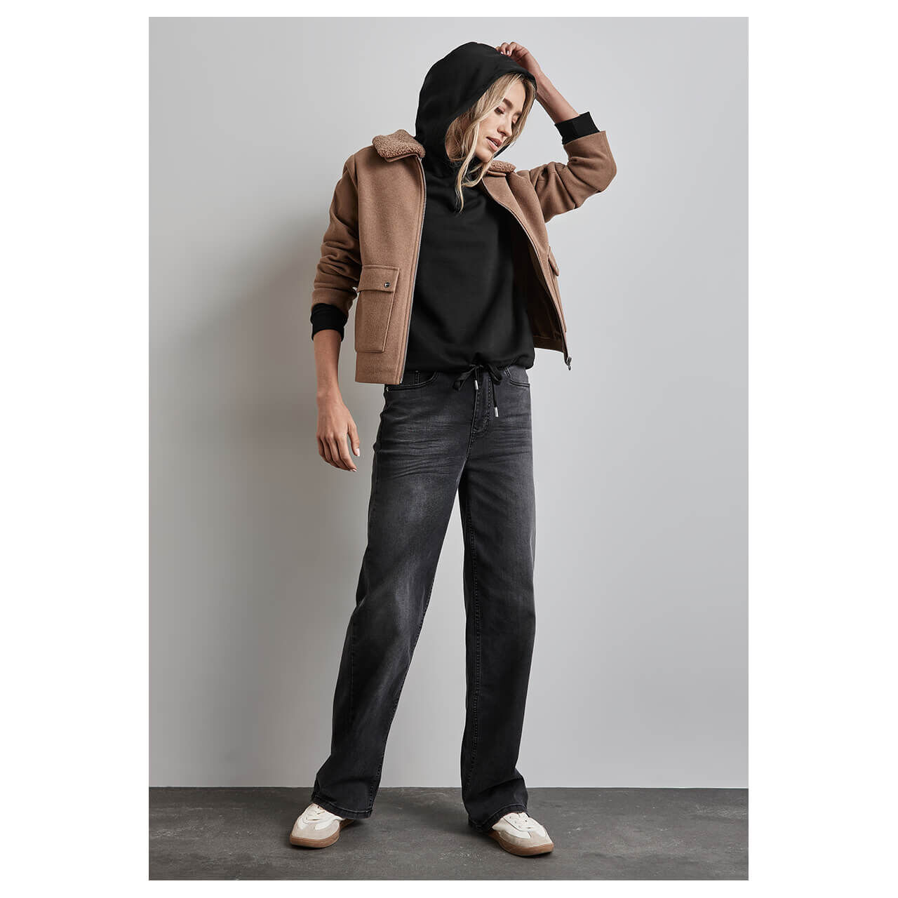 - Beschreibung Damen Hoodie Sweatshirt in Schwarz Das Damen Sweatshirt von Street One kombiniert einen weichen Baumwollmix mit einem sportlichen Tunnelzug am Saum. Die Kapuze und die langen Ärmel mit Bünd… Mehr