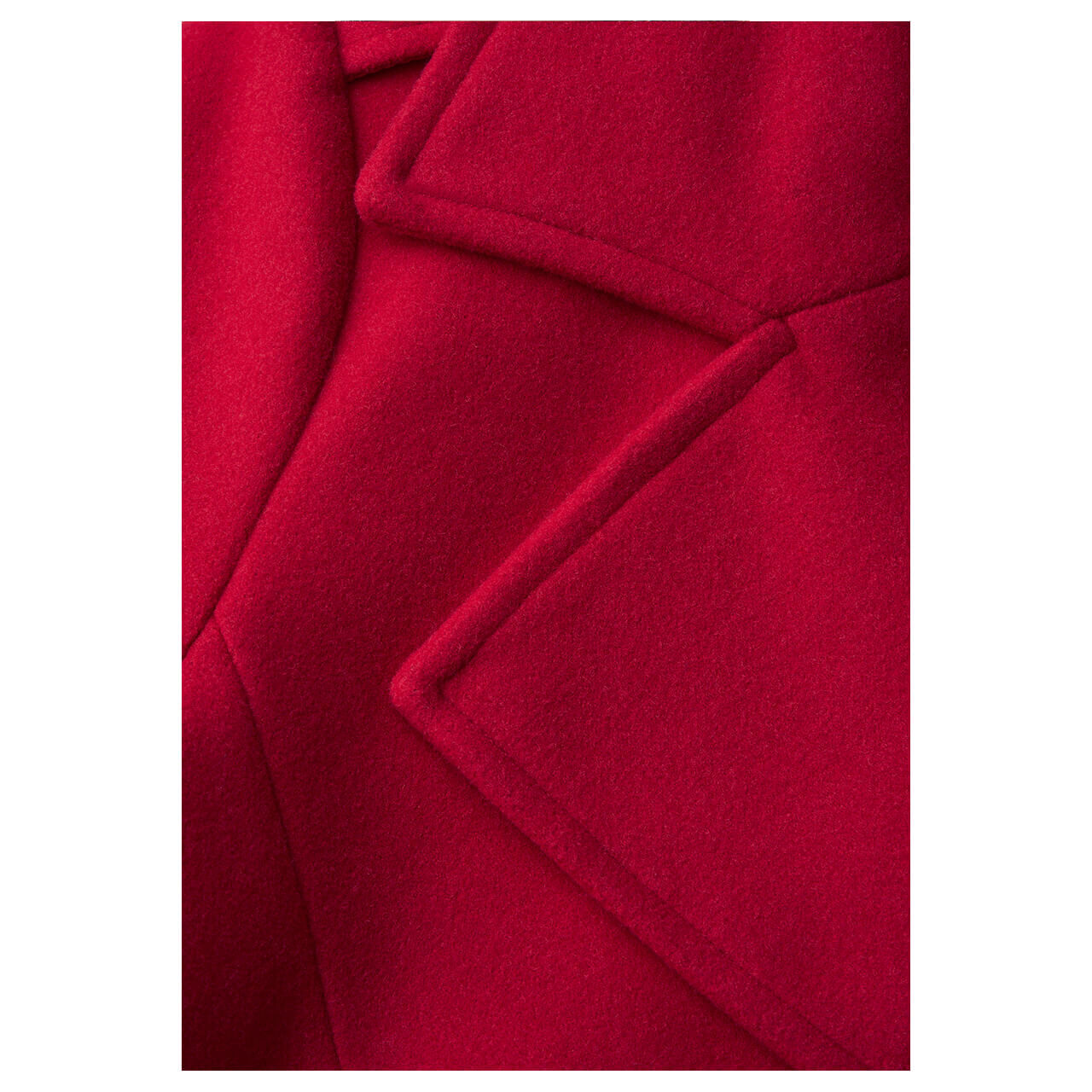 In Ihrer neuen Street One Damenjacke werden Sie zum Hingucker an kühlen Tagen! Ein intensives Rot wird durch den Reverskragen und die 4-Knopfleiste besonders gut in Szene gesetzt.