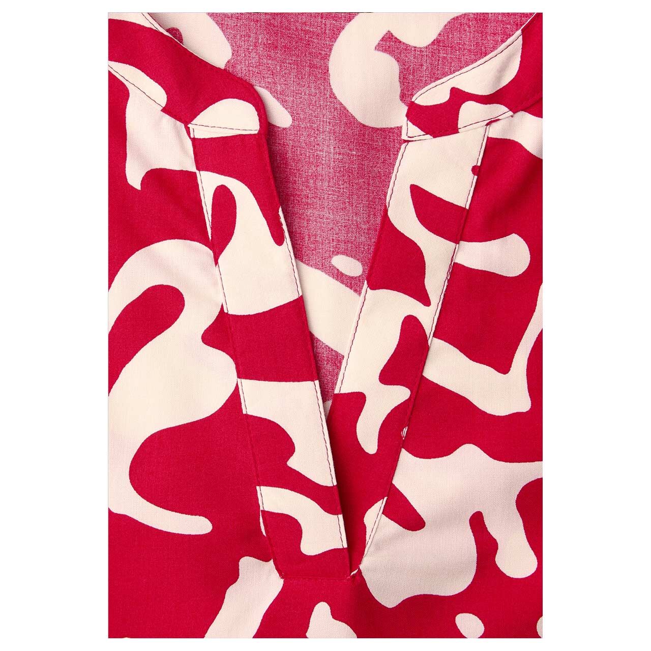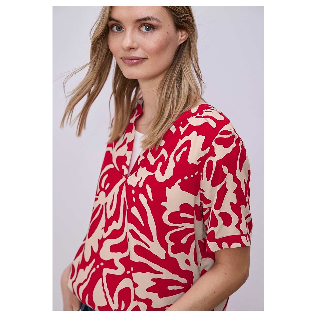 Street One Damen Kurzarm Bluse Splitneck Turn-Up salsa red print