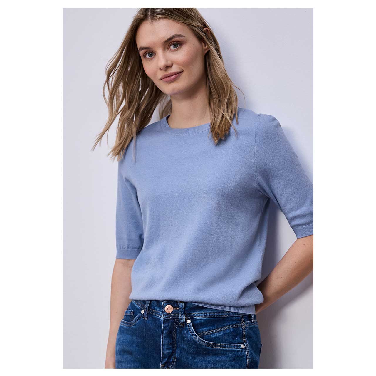 Street One Damen Kurzarm Pullover Short Sleeve bonnet blue