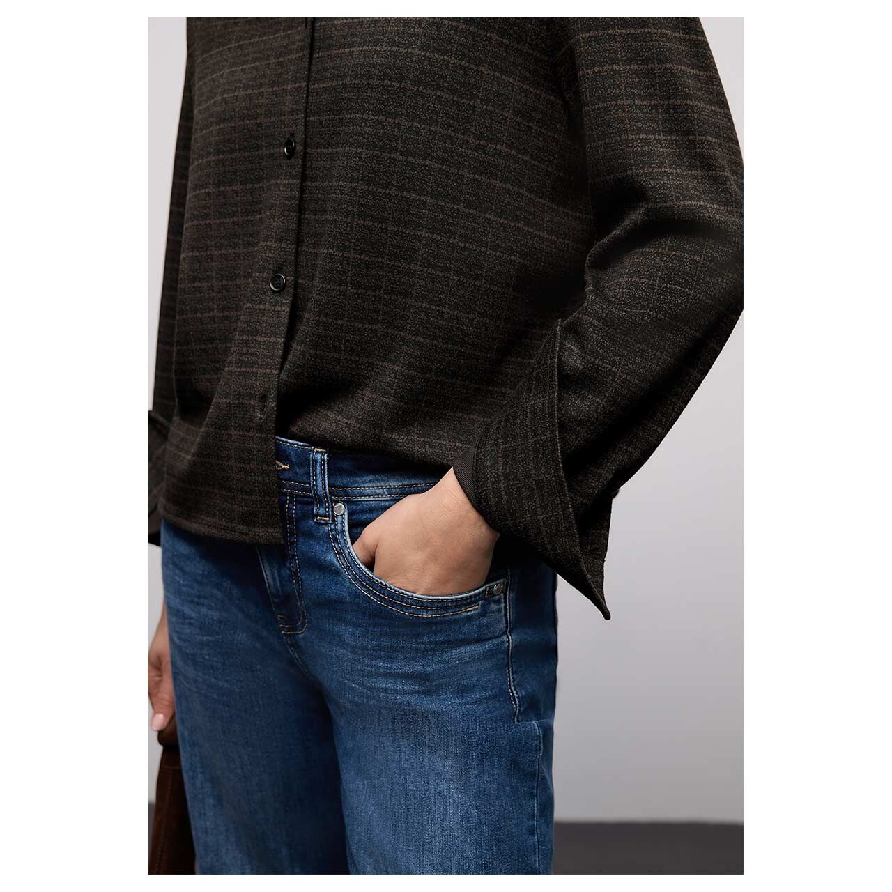 Die Damen Bluse von Street One überzeugt mit einem klassischen Karomuster in strukturierter Jacquard-Optik. Hemdkragen, Knopfleiste und seitliche Schlitze machen sie zum modernen Klassiker. Die hochwertige Verarbeitung bietet angenehmen Tragekomfort. Ein stilvoller Begleiter für smarte Everyday-Looks!