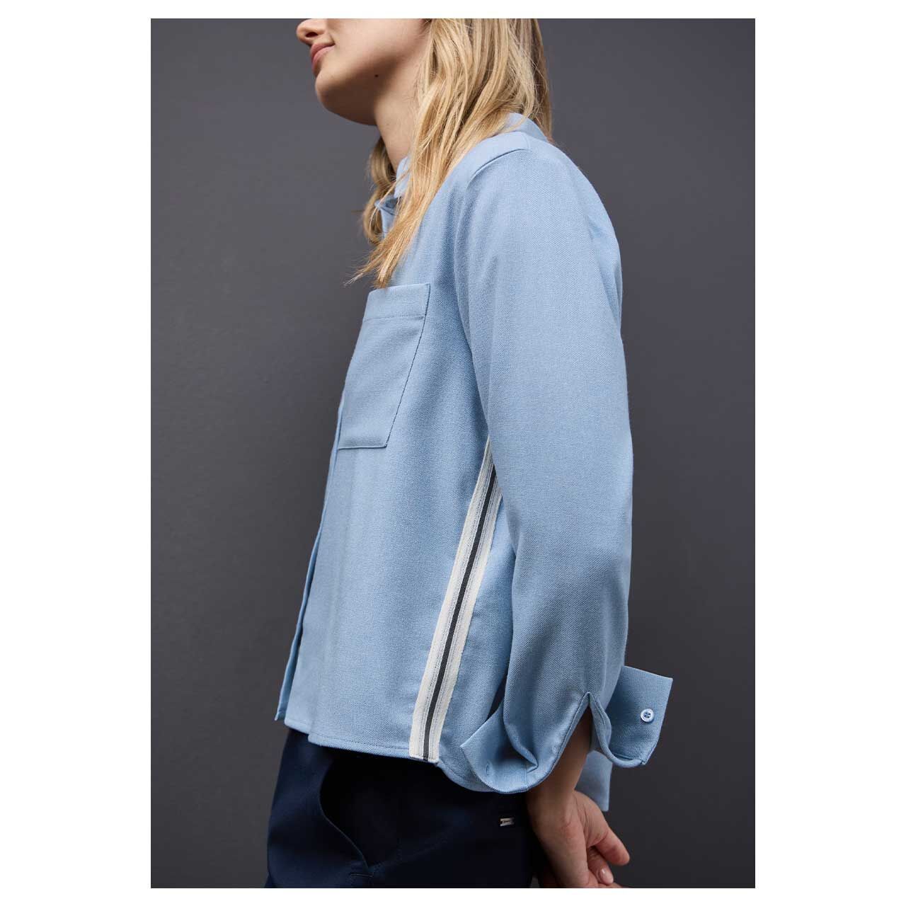 Damen Langarm Bluse Melange Shirtcollar in Hellblau meliert
