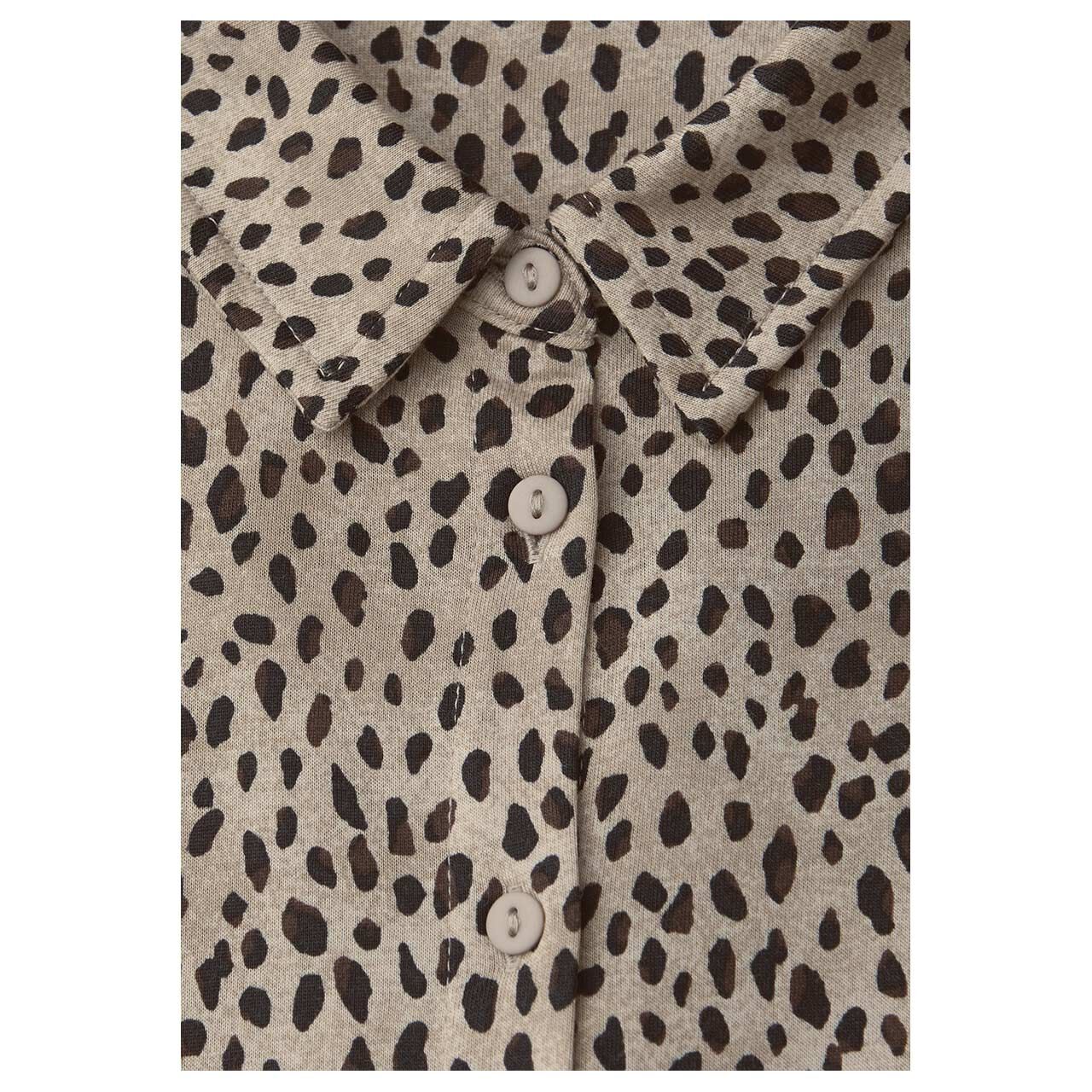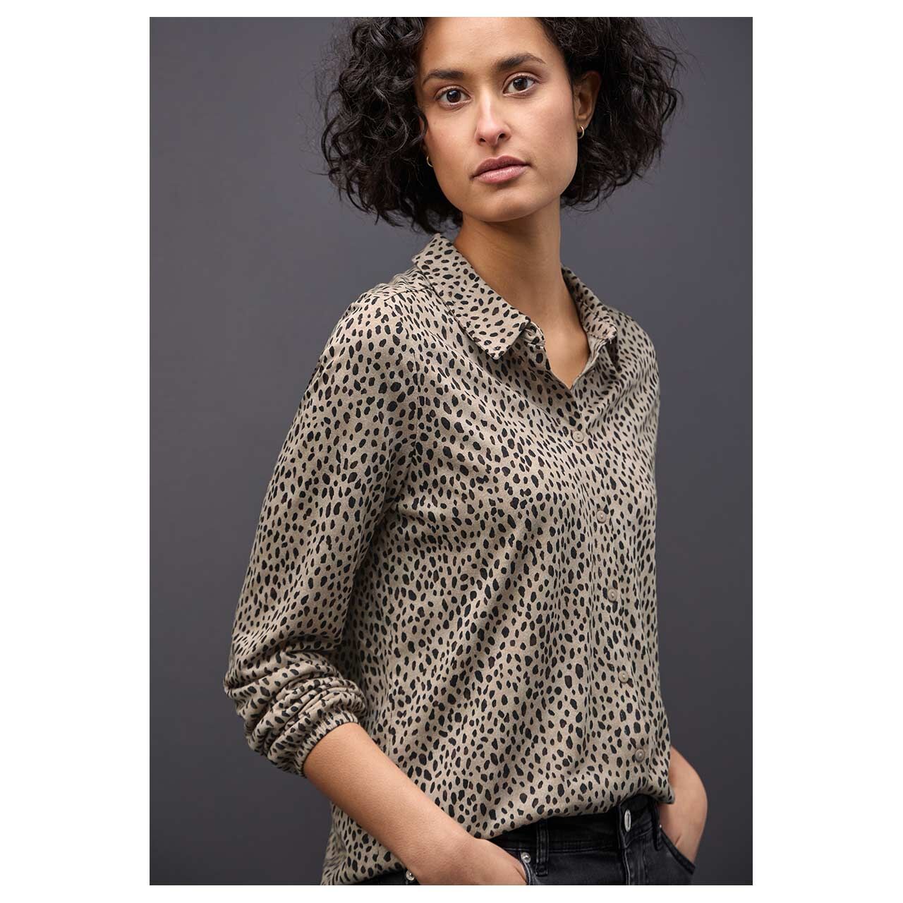 - Beschreibung Damen Langarm Bluse Printed Jersey in Beige mit Print Diese Damen Bluse von Street One kombiniert einen klassischen Hemdkragen mit verspieltem Leo-Print. Die Knopfleiste, der Tunnelzug am Saum und di… Mehr