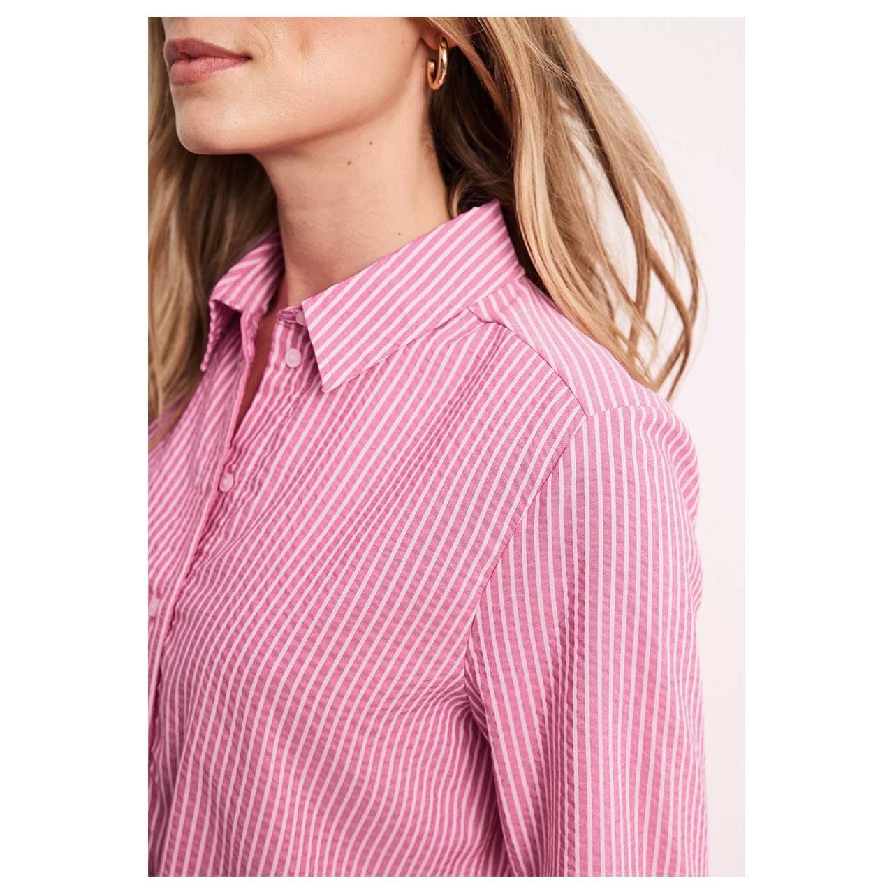Street One Damen Langarm Bluse Seersucker Striped Shirtcollar magenta dream