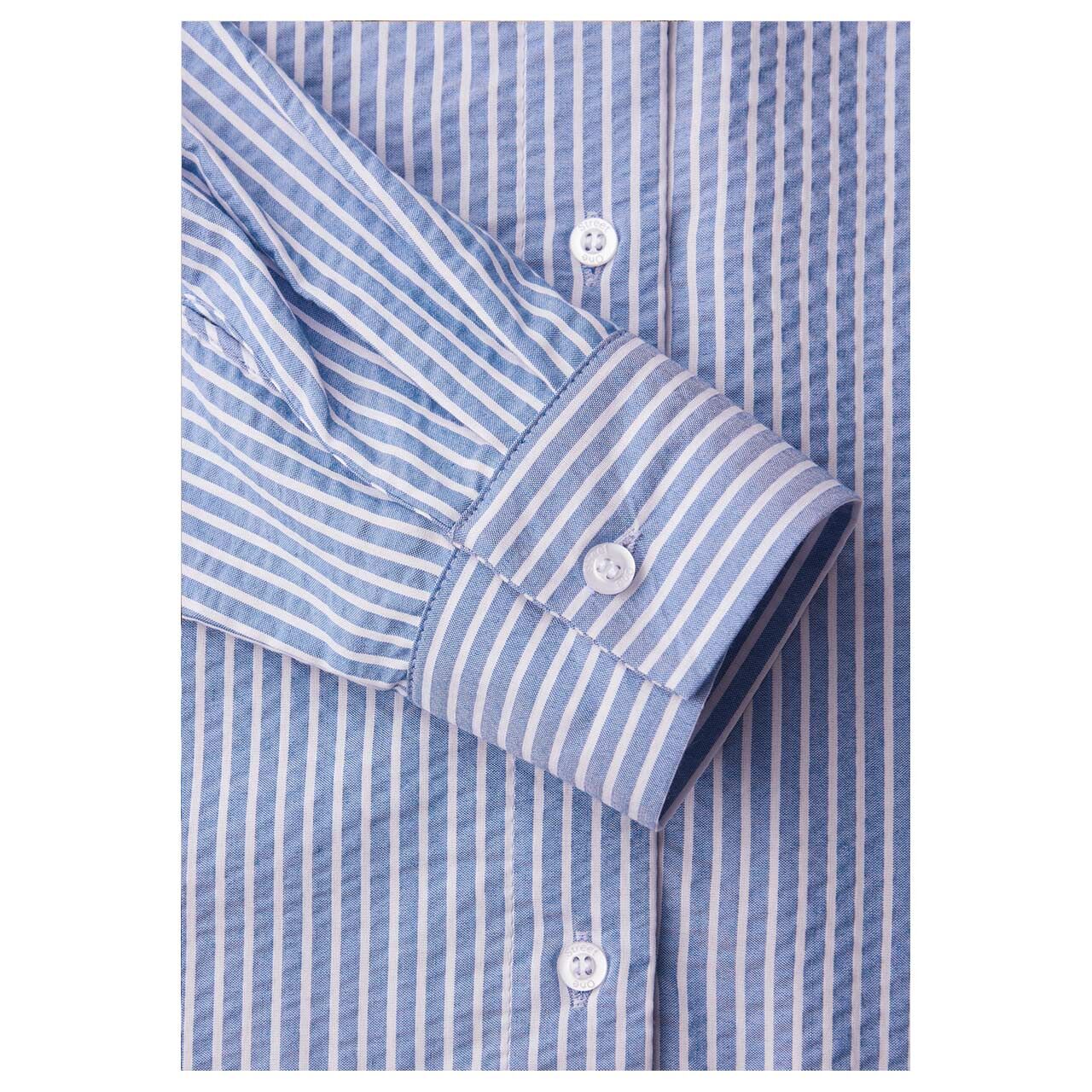 Damen Langarm Bluse Seersucker Striped Shirtcollar in Blau gestreift