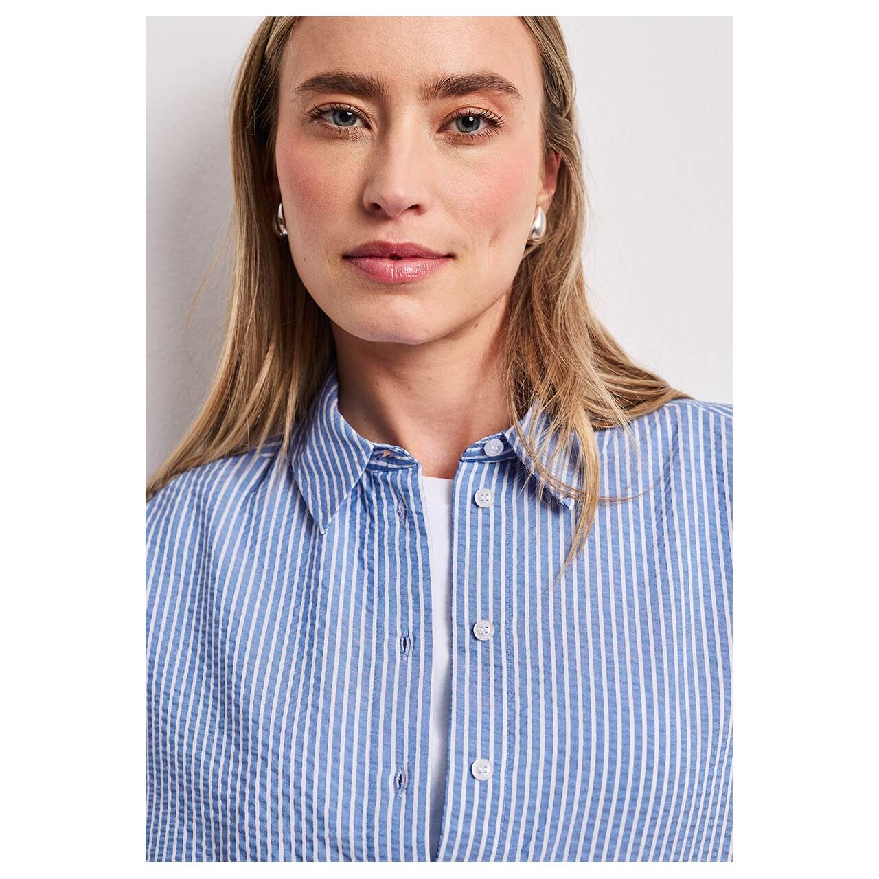 Street One Damen Langarm Bluse Seersucker Striped Shirtcollar original blue