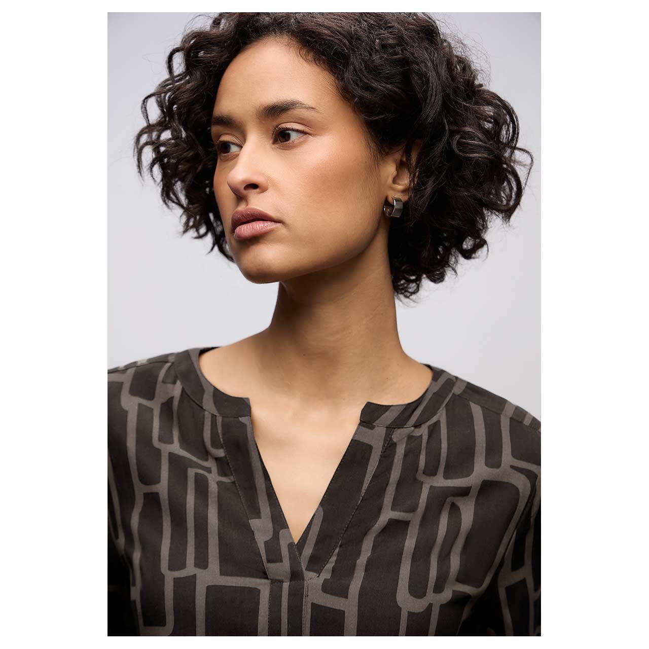 Street One Damen Langarm Bluse Splitneck Tunic darkest brown print