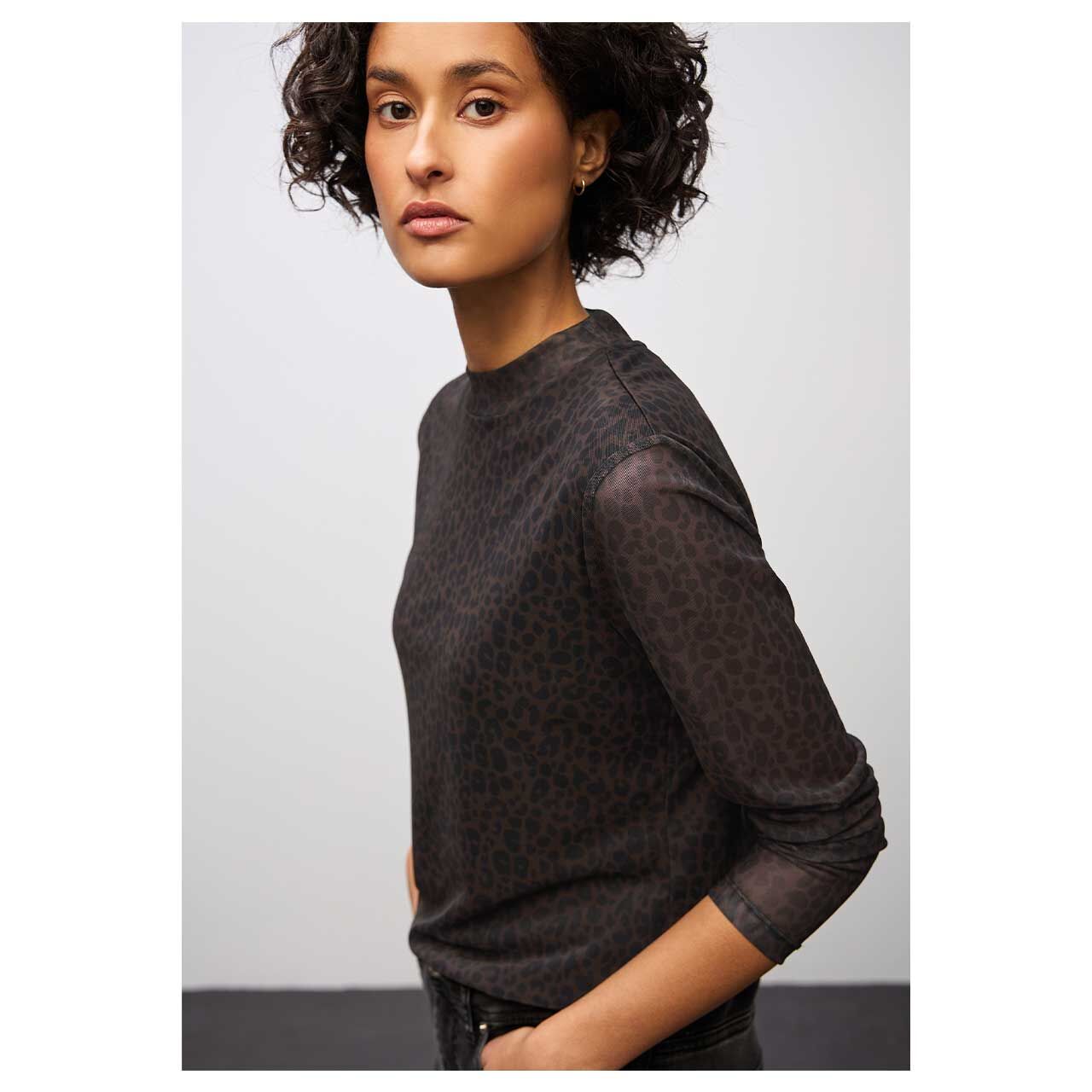 Damen Langarm Shirt Printed Mesh in Dunkelbraun mit Print
