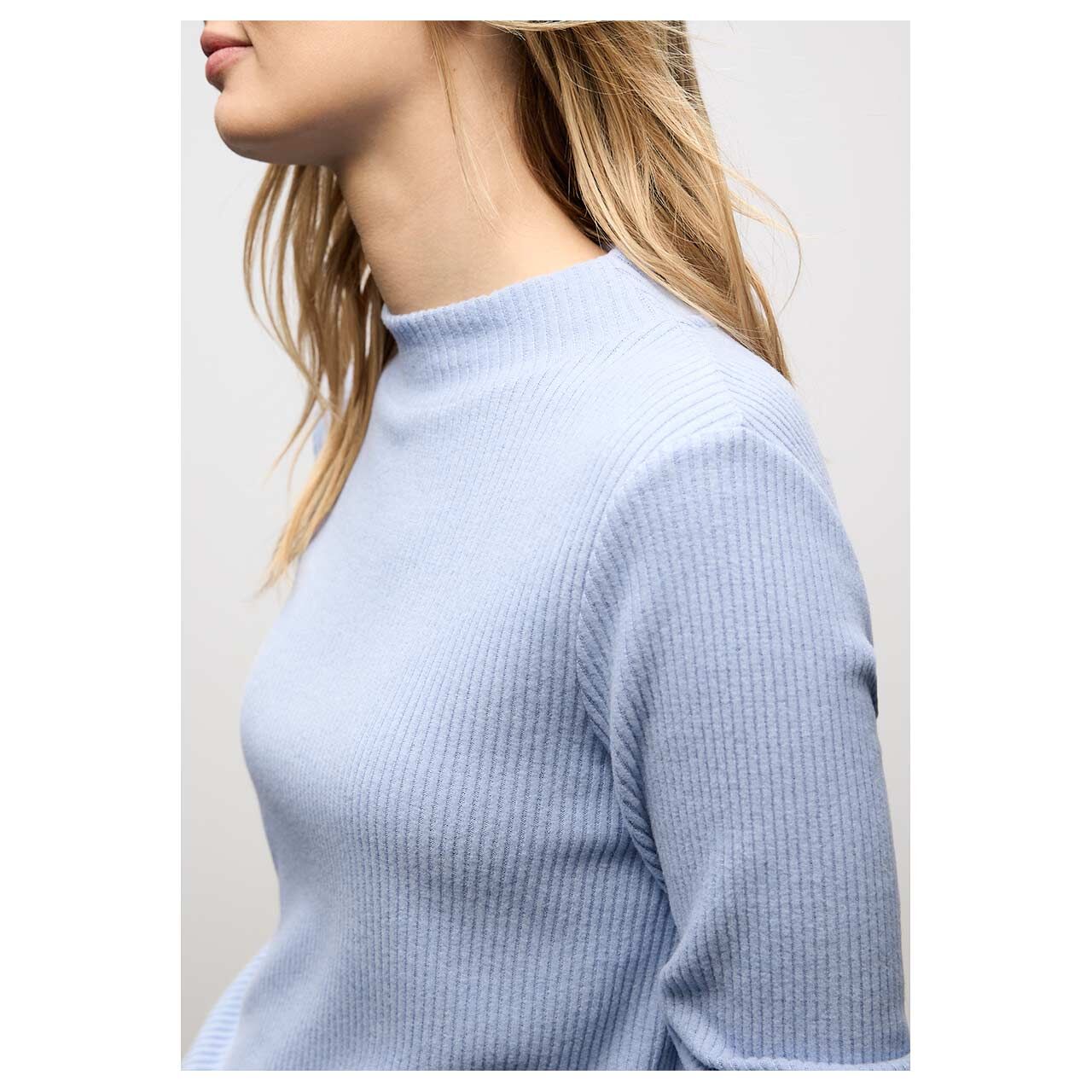Street One Damen Langarm Shirt Soft Rib Turtle Neck frosted blue melange