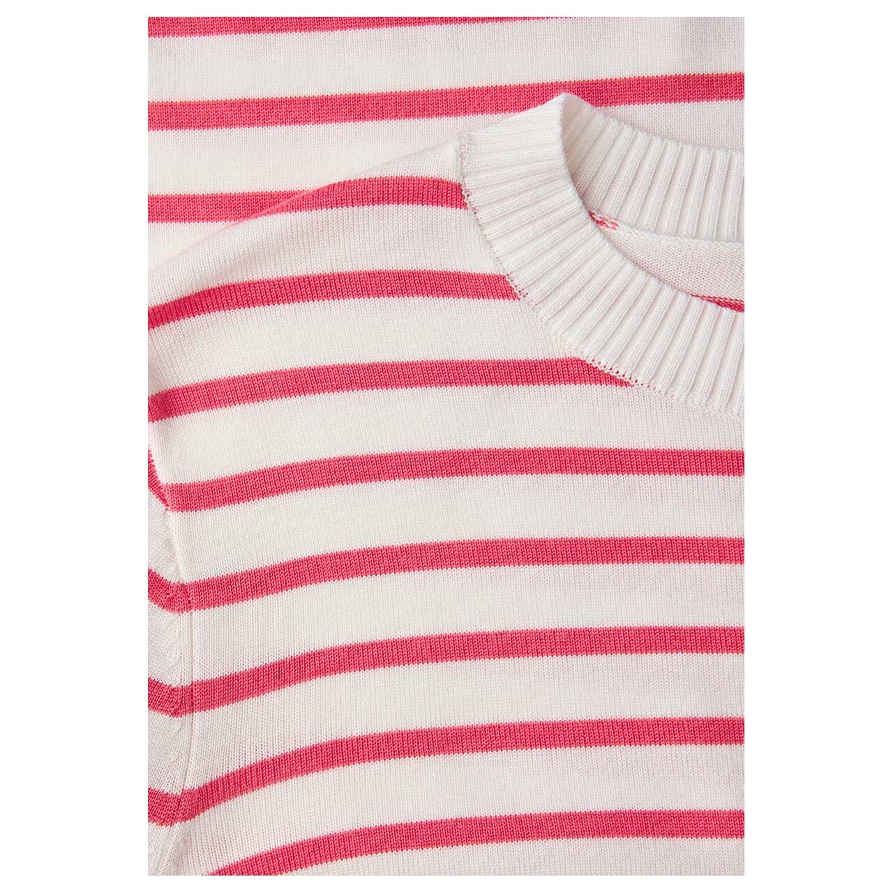 Der Damen Pullover von Street One zeigt sich im klassischen cremeweiß-roten Ringeldesign. Der gerade Schnitt und der weiche Stoff sorgen für ein angenehmes Tragegefühl. Rippbündchen an Rundhalsausschnitt, Saum und Ärmeln geben dem Pullover eine cleane, sportliche Optik und machen ihn zum unkomplizierten Alltagsbegleiter.