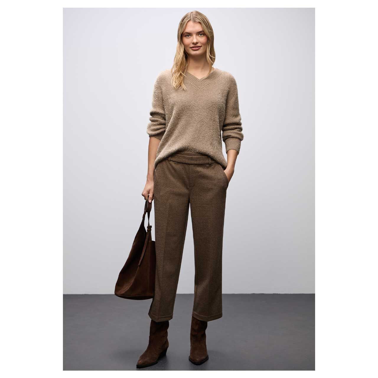 Street One Damen Pullover Fluffy V-Neck mocha glow
