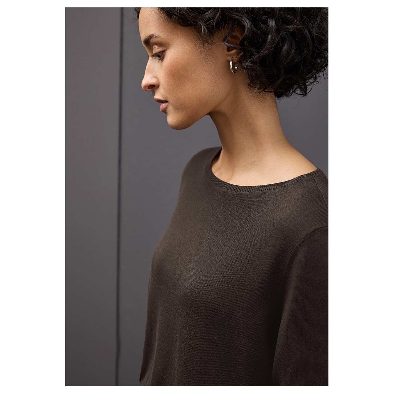 Street One Damen Pullover Rounded U-Boat Neck deep roast brown