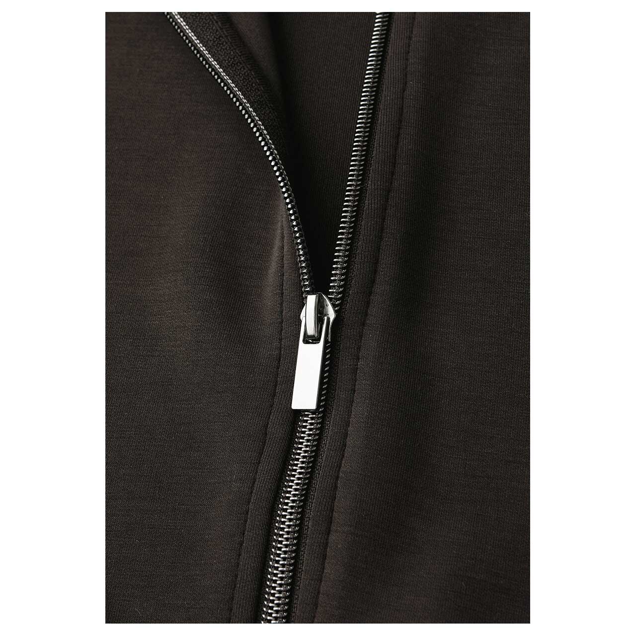 So soft wie Seide! Die Damen Sweatjacke von Street One begeistert in elegantem Dunkelbraun und überzeugt mit einer außergewöhnlich weichen Haptik. Der seidige Glanz verleiht dem sportiven Design eine edle Note, während der bequeme Schnitt für hohen Tragekomfort sorgt.