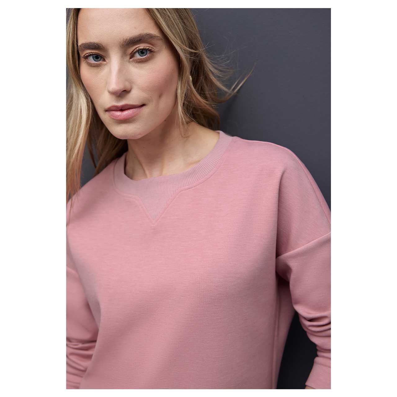 - Beschreibung Damen Sweatshirt Rib Neck in Rosa meliert Das Damen Sweatshirt von Street One überzeugt mit einem modernen Look und feinen Ripp-Details am Rundhalsausschnitt. Die soften Materialien bieten… Mehr