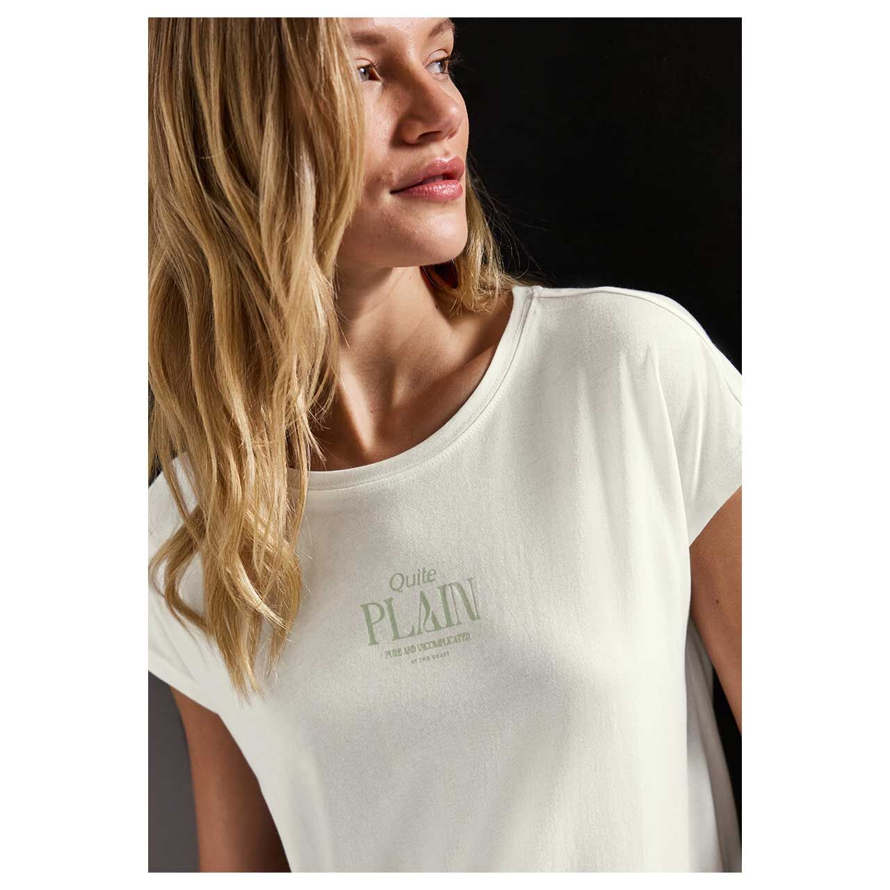 Damen T-Shirt Basic Partprint in Cremeweiß mit Print