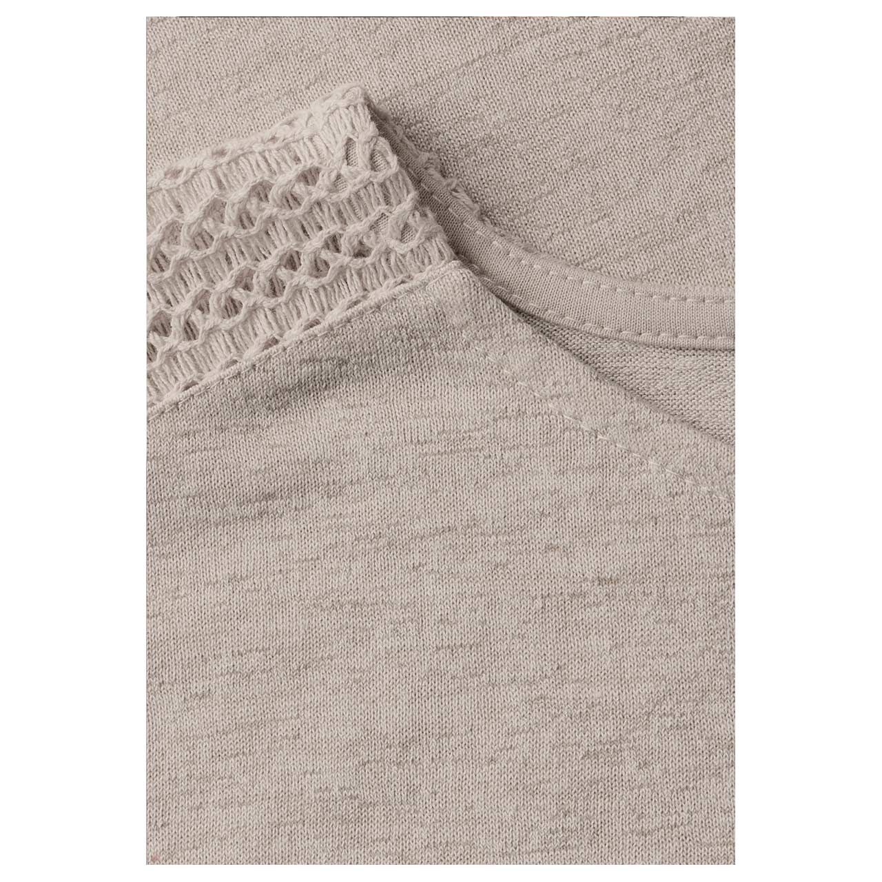 Damen T-Shirt Linen Look with Laceshoulder in Beige meliert