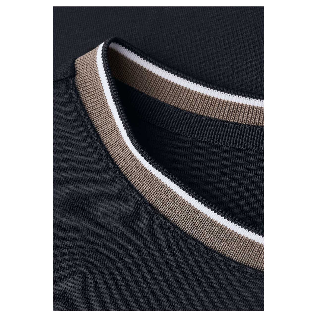Zeitlos mit Twist! Das Damen T-Shirt von Street One begeistert in Unifarbe und dem farblich abgesetzten Kragen, der das Highlight des Oberteils darstellt. Dank sanfter Töne und der dezenten Streifen sorgt er für das gewisse Extra.