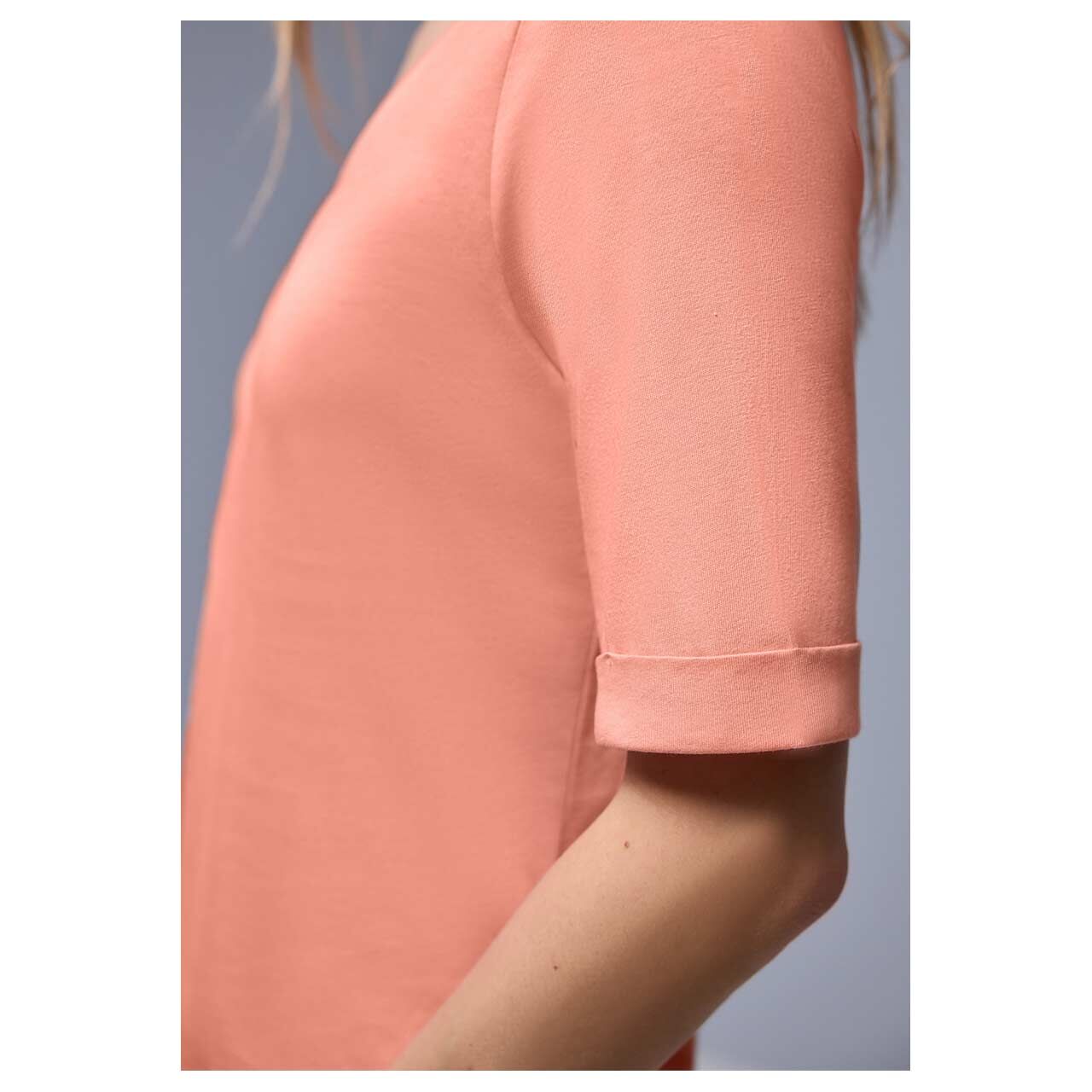Damen T-Shirt V-Neck Turn-Up Cuff in Orange-Rosa