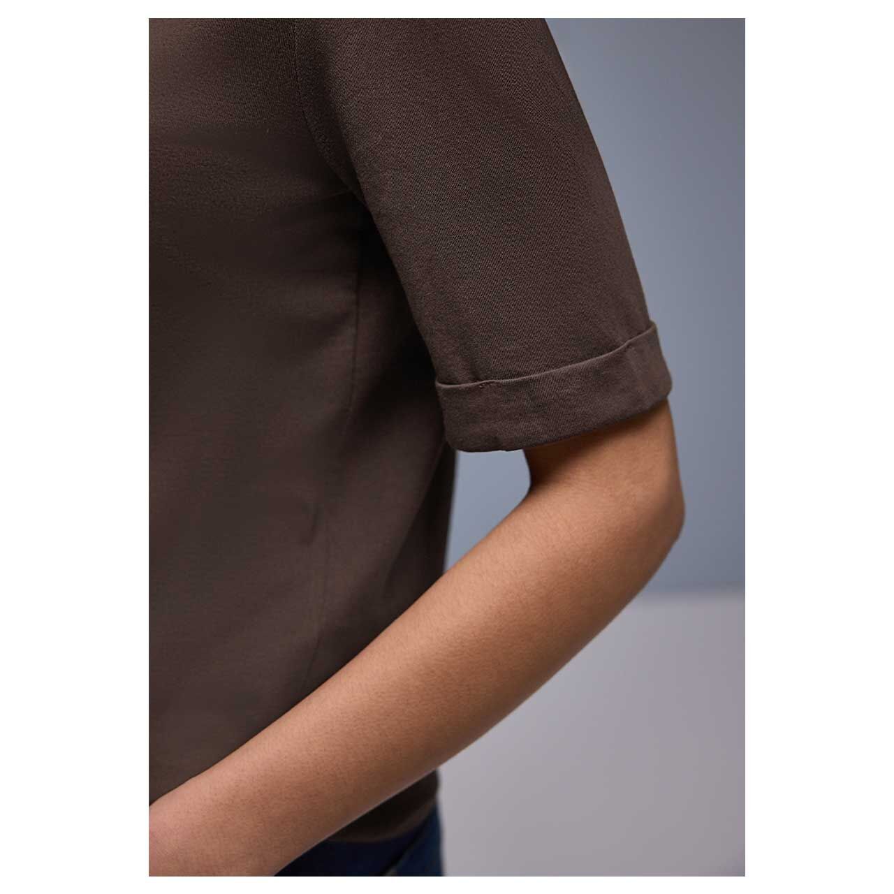 Street One Damen T-Shirt V-Neck Turn-Up Cuff molten earth