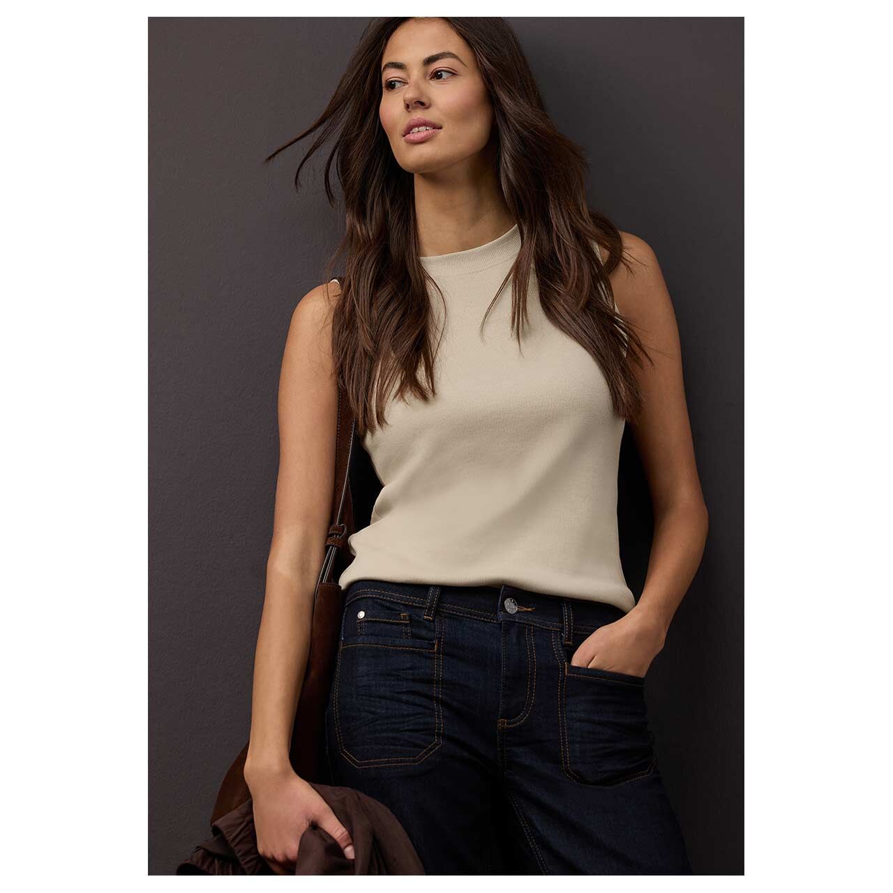 - Beschreibung Damen Top Basic Rib in Beige Das ärmellose Damen Top von Street One überzeugt mit feiner Rippstruktur und einem modischen, kurzen Turtleneck. Der softe Baumwoll-Modalmix mit Stretchanteil s… Mehr