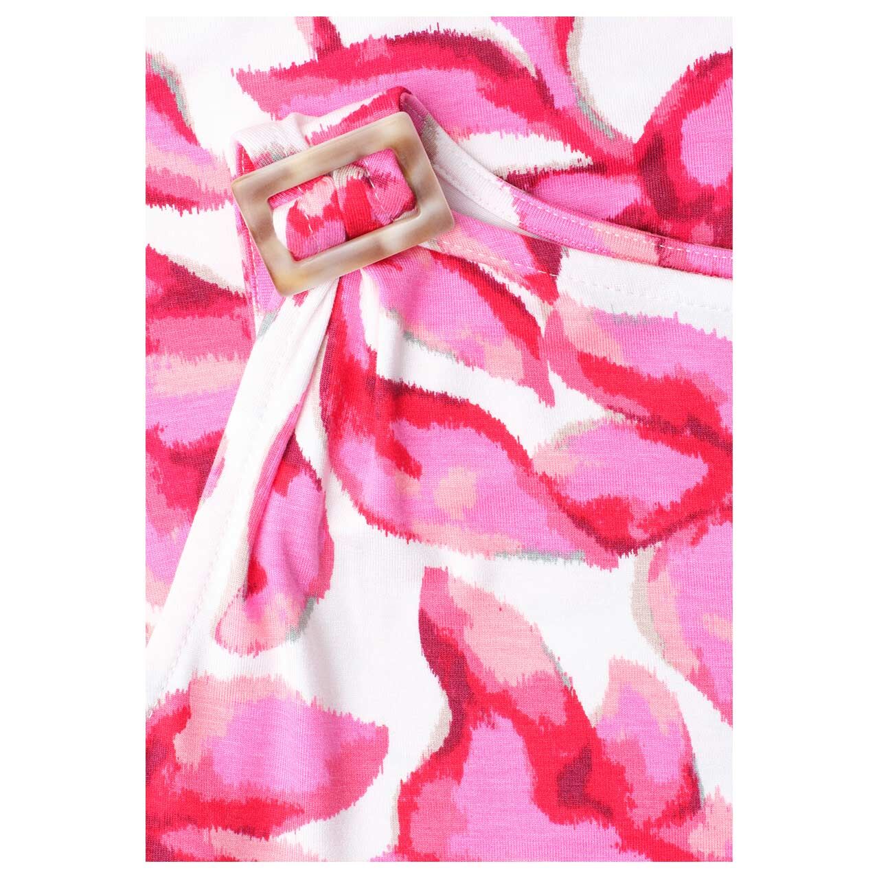 Das Damen Top von Street One bringt mit seinem Muster frischen Schwung in Ihren Look. Der Rundhalsausschnitt wirkt modern, während Träger mit Schnallendetail stilvolle Akzente setzen. Die softe Viskosequalität mit Stretchanteil sorgt für ein angenehmes Tragegefühl.