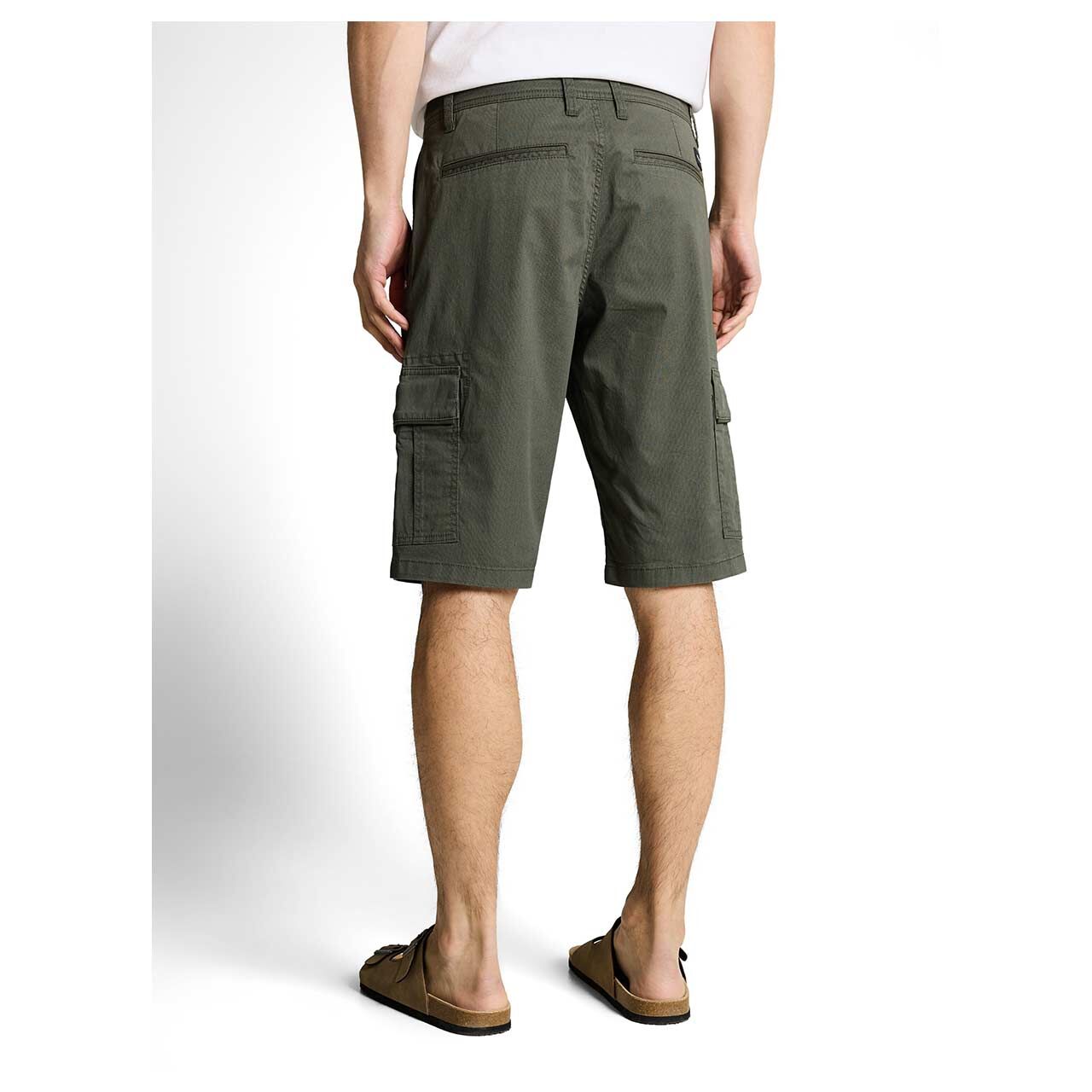 Stretch Herren Cargo Baumwoll Bermuda in Olivgrün mit Print