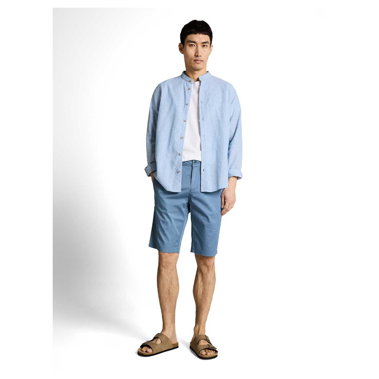 Stretch Herren Chino Baumwoll Bermuda in Hellblau mit Print
