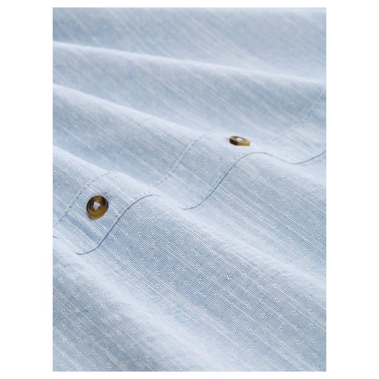 Das Tom Tailor Herren Hemd ist nicht nur optisch, dank des dezenten Prints und der schönen Struktur aus Weiß und Blau ein echter Hingucker, sondern auch funktional. So lassen sich die Ärmel auf T-Shirt-Länge kürzen, was das Oberteil ideal für die wärmeren als auch kälteren Temperaturen macht.