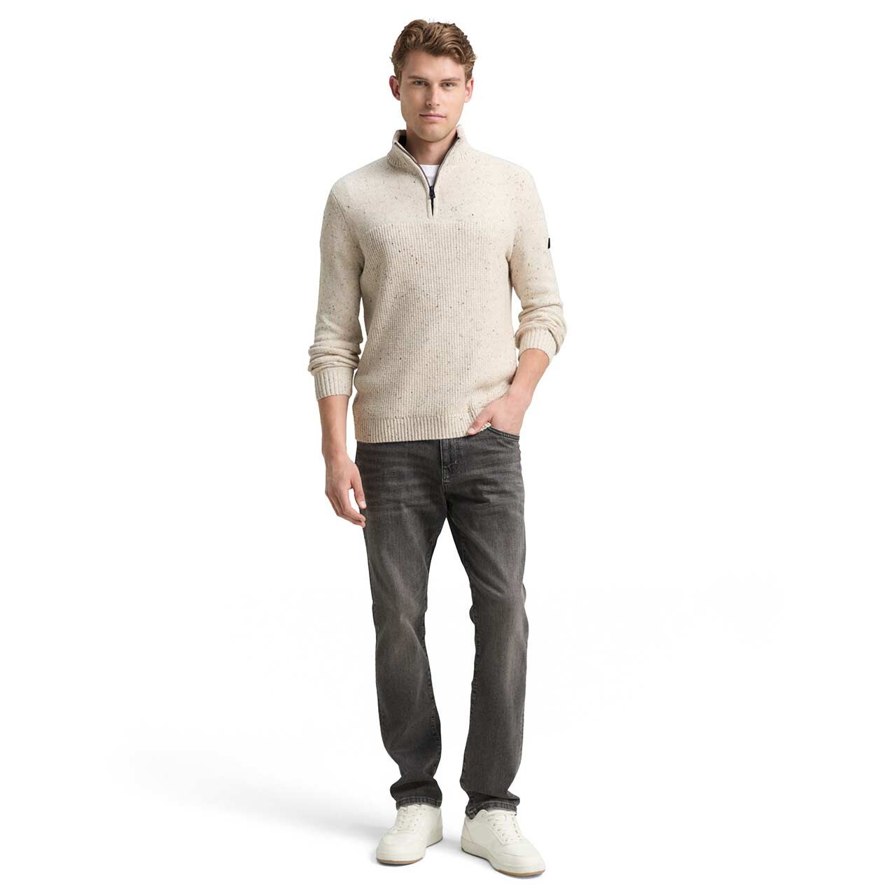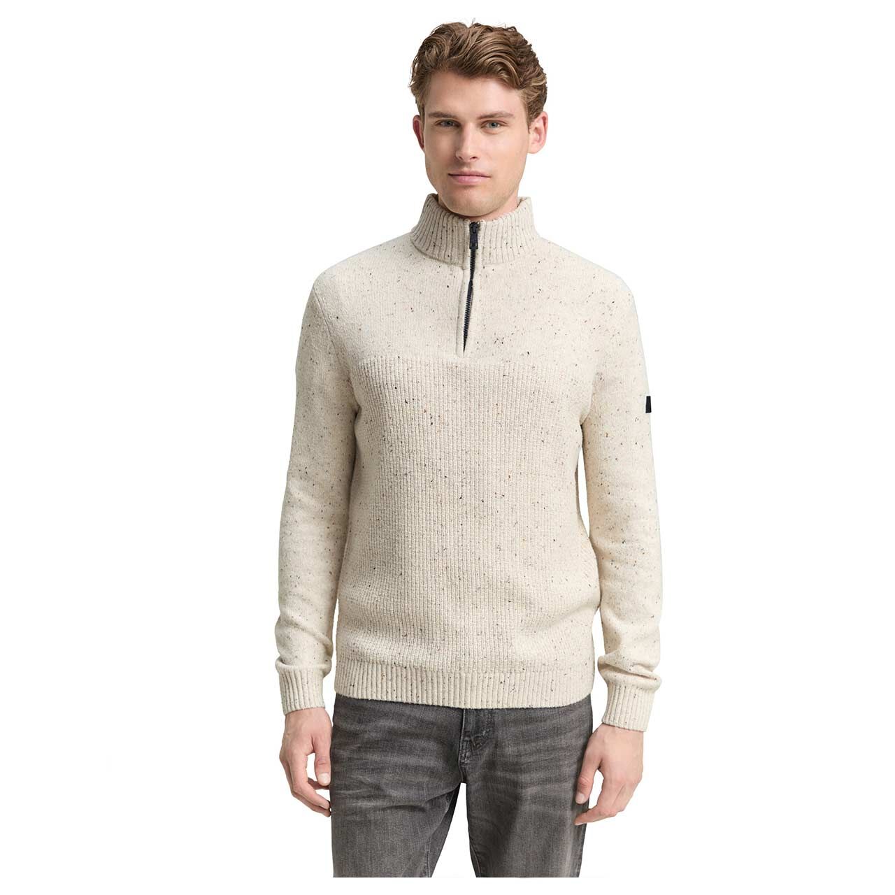 - Beschreibung Herren Pullover Structured Mix Knit Troyer in Cremeweiß meliert Gemütlich, modern und absolut vielseitig: Dieser Herren Pullover von Tom Tailor überzeugt mit cremeweißem St… Mehr