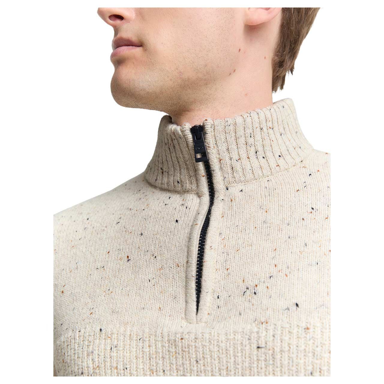 Herren Pullover Structured Mix Knit Troyer in Cremeweiß meliert