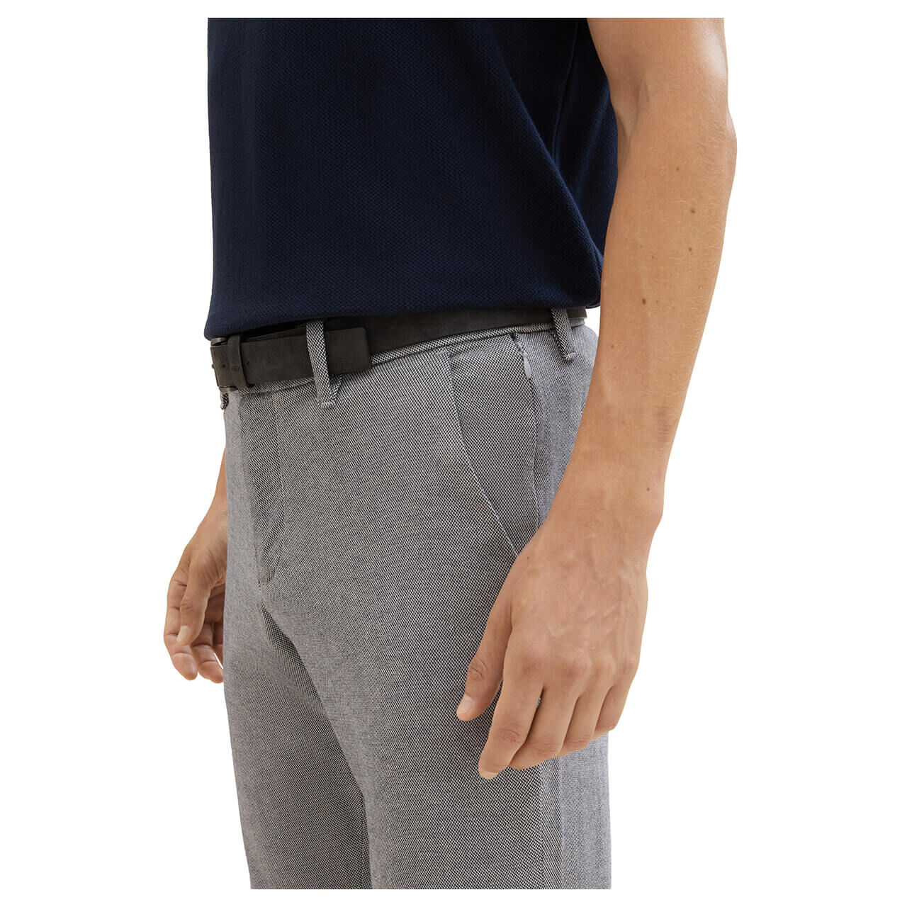 Das blau-weiße Zickzackmuster auf der Tom Tailor Travis beschert der Herrenhose eine einzigartige Optik. Praktisch bei dem Modell: Der Gürtel ist gleich inklusive! Die Chinohose mit Münztasche hat einen etwas festeren Stoff als andere Baumwollhosen.