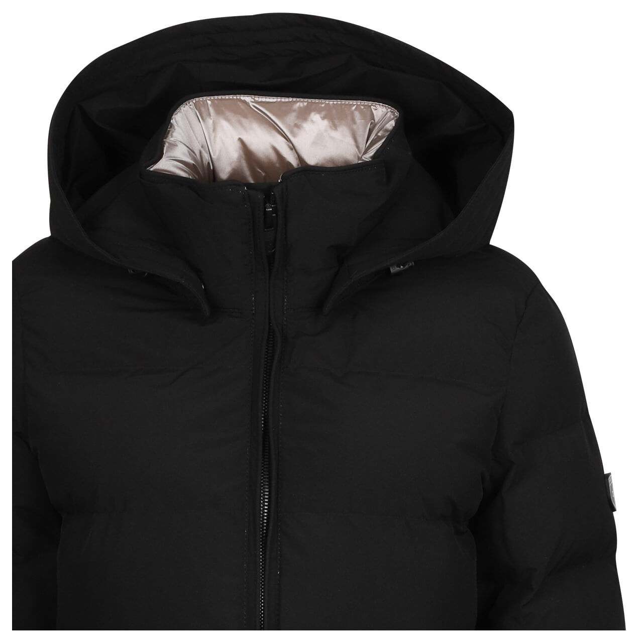 Black is beautiful! Die Wellensteyn Goldmine Medium kommt mit einer feinen, matt-schwarzen Oberfläche daher, die ihr einen besonders sanften und zurückhaltenden Charakter verleiht. Der cleane Look wird um ein paar feminine Attribute erweitert. Da wären zum einen die pobedeckende Länge und zum anderen der taillierte Schnitt. Praktische Details dieser Damen Winterjacke sind ihr Zwei-Weg-Reißverschluss, eine abnehmbare Kapuze sowie das kuschelige Teddyfell im Innern der beiden verschließbaren Fronttaschen. Abschließend dürfen auch die langen Bündchen am Ärmelende erwähnt werden, die toll als Windstopper funktionieren.